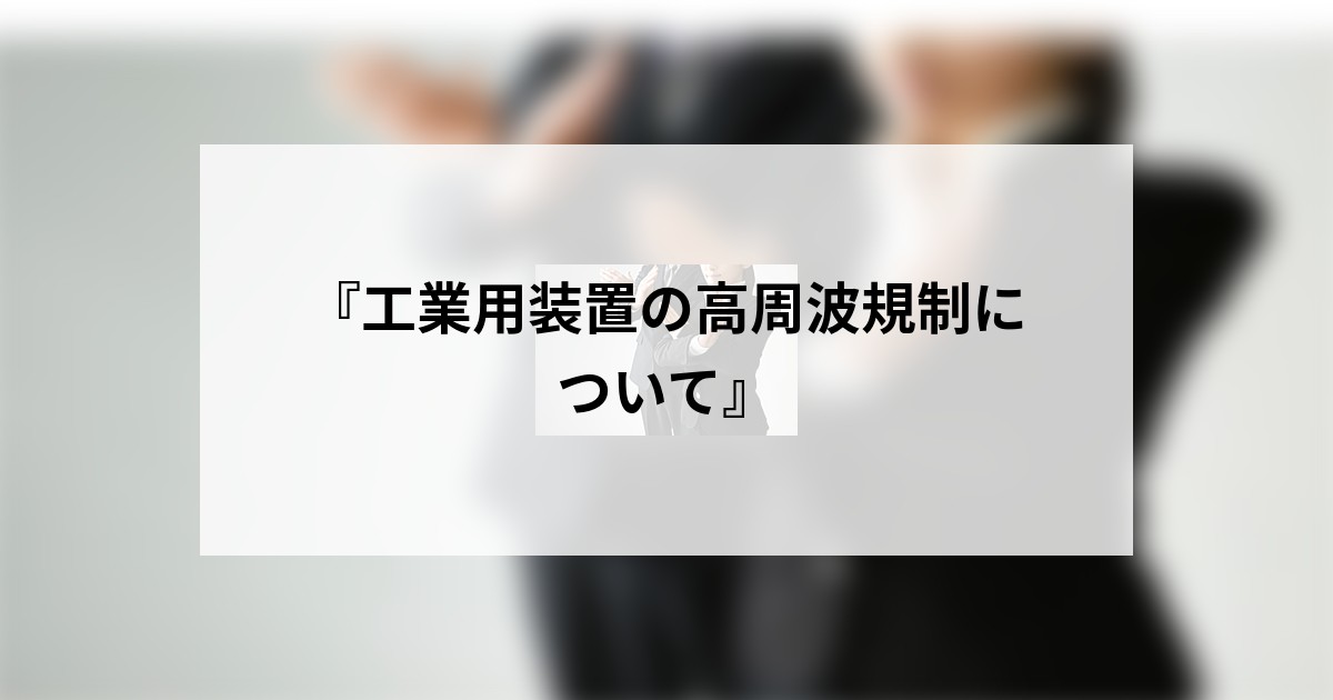 いつもお世話になっております。今回テーマは「工業用装置の高周波規制について」です。よろしくお願いします。高周波を利用した設備は、設置する際に総務省に届出を個別に実施するか、あらかじめ総務大臣から技術基準に適合していることの指定(型式指定)を受ける必要があります。弊社のUV照射装置も高周波を利用して・・・・