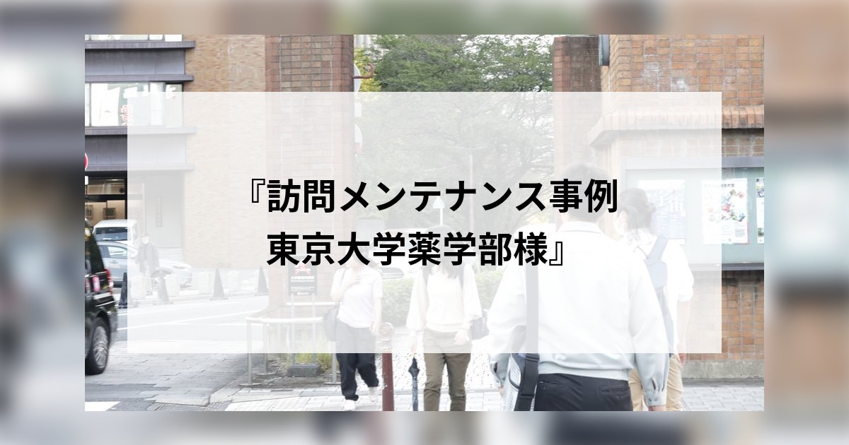 2024年10月11日 コラム 『訪問メンテナンス事例 東京大学薬学部様』 コラム『訪問メンテナンス事例 東京大学薬学部様』を追加しました。コラム『訪問メンテナンス事例 東京大学薬学部様』を追加しました。ぜひご利用の際に参考にしてください。コラムの続きはこちら